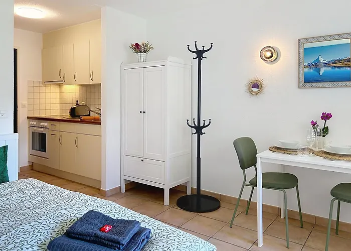 Las habitaciones de este apartamento cuentan con una cocina completa. Los huéspedes pueden disfrutar de la cocina contemporánea en el restaurante Z'Art, situado justo al lado de este establecimiento. La parada de autobús más cercana al apartamento es Vispa, a unos 5 minutos a pie.